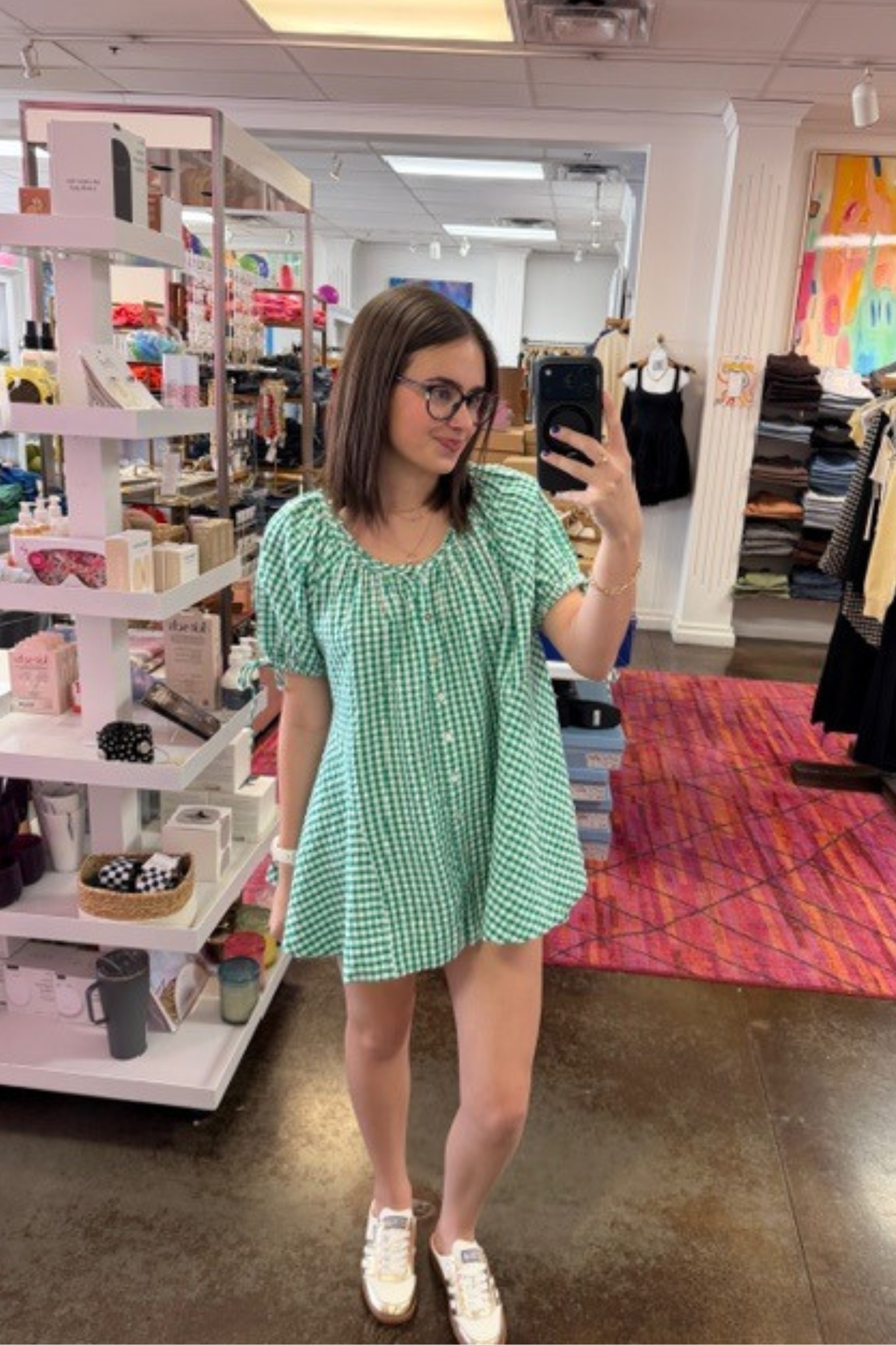 Add instant charm to any look with this sweet tunic top, featuring a floaty silhouette and puffed sleeves, finished with a button closure for endless ways to wear.