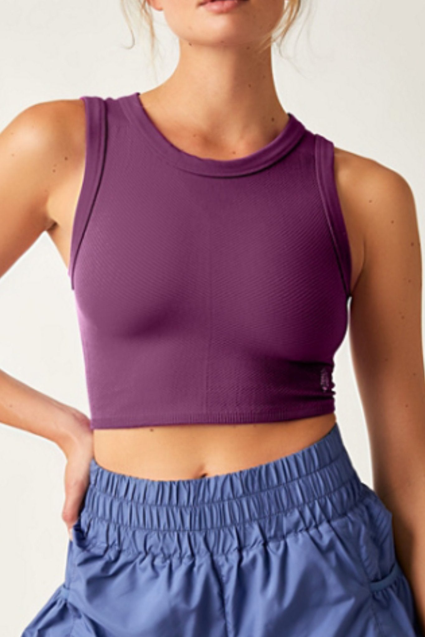A new addition to your favorite compressive collection, this sleek tank is featured in a cropped fit and muscle-style silhouette with ribbed knit detailing and slight scoop neckline.
