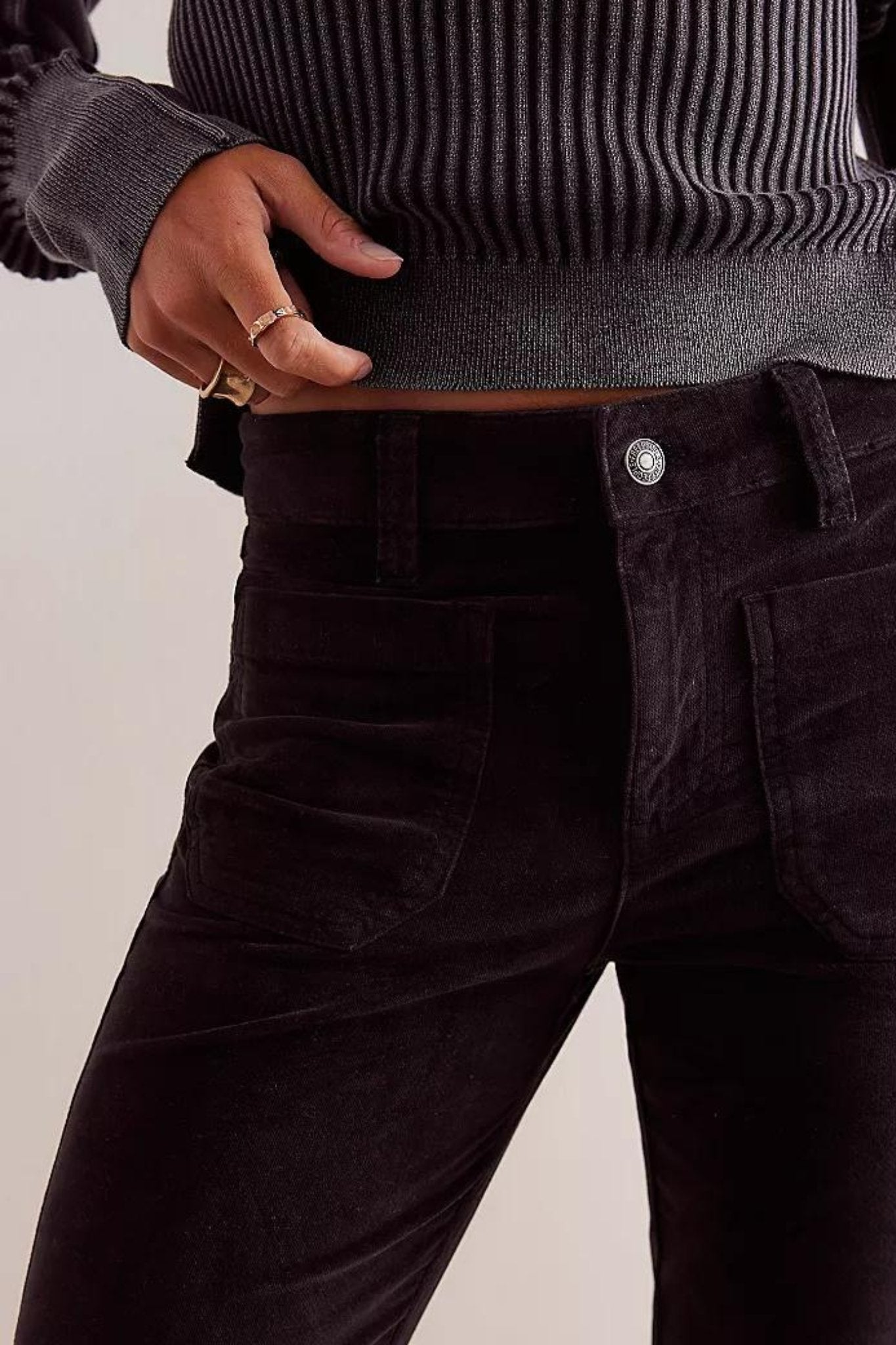 Features: Zip fly and button closure, front pouch pockets, uncut corduroy fabric for a velveteen finish, cropped inseam