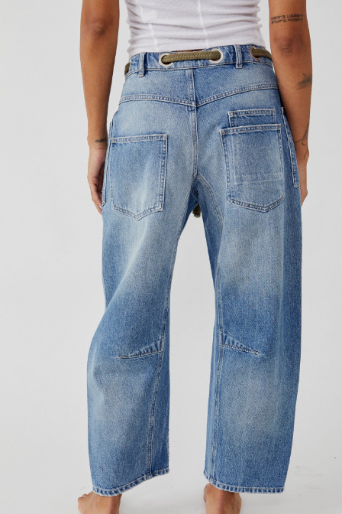 Free People: Moxie Low Slung Pull On Barrel Pant in Truest Blue