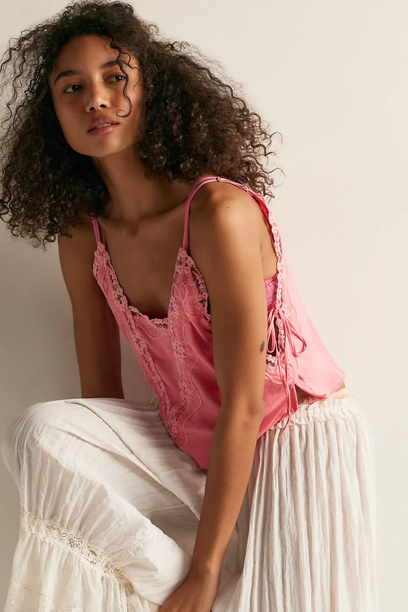 Add a lovely layer to your look with this so sweet cami, adorned with sheer lace trim throughout.