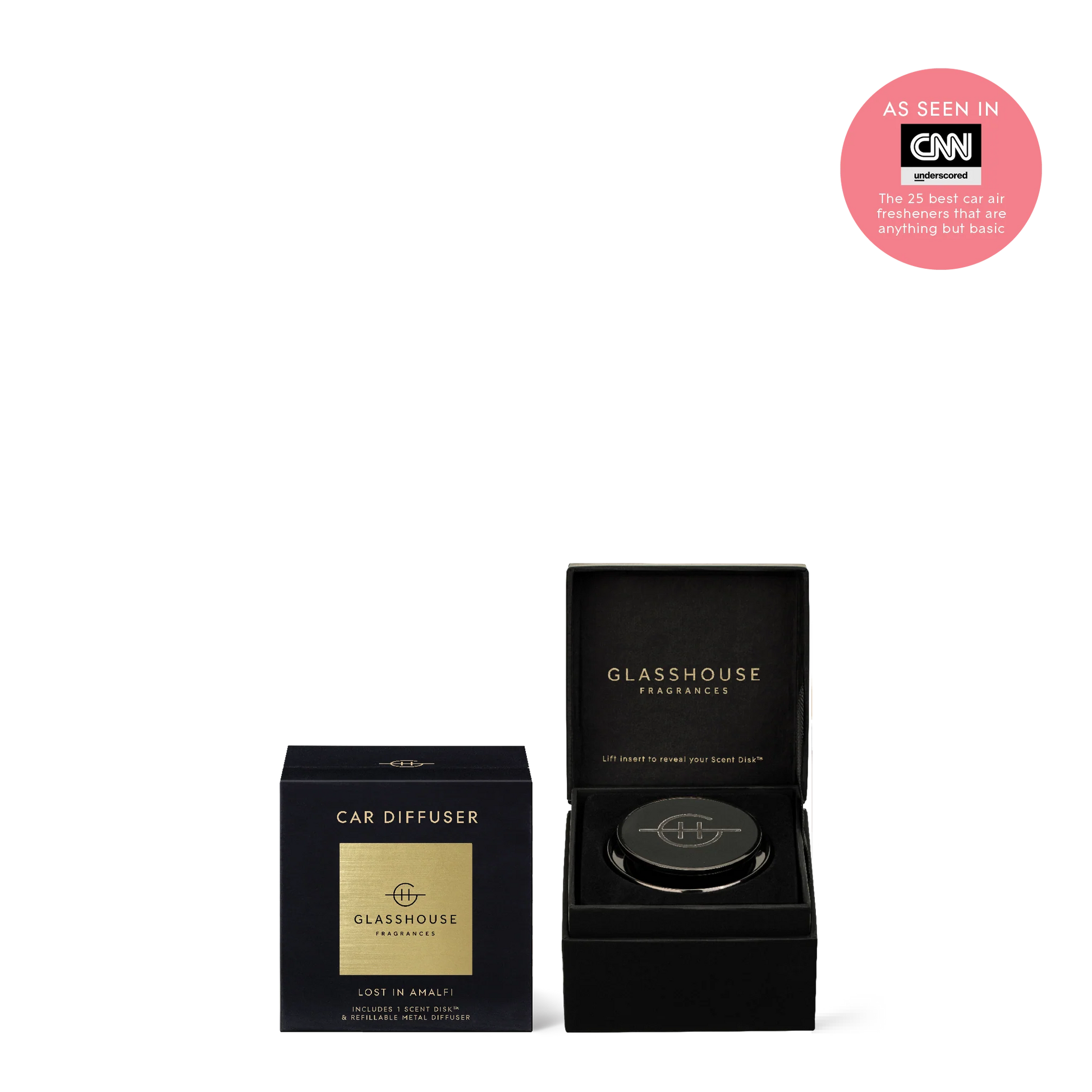 Black Car Diffuser Set with 1 Replacement Scent Disk by: Glasshouse Fragrances