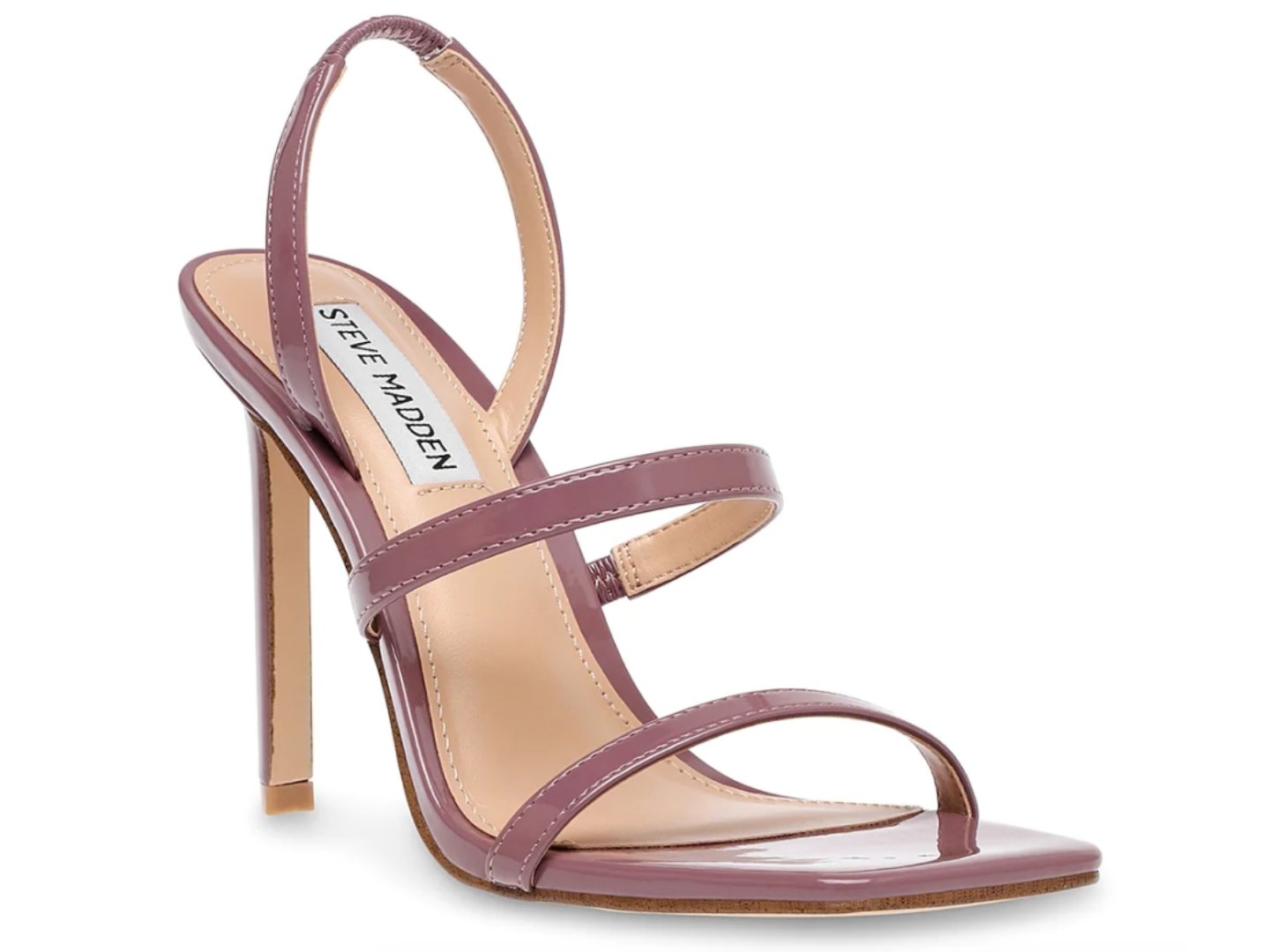 A trendy square toe updates this otherwise timeless dress sandal, featuring a tall stiletto heel and trio of skinny straps. Choose between classic neutral hues or step out in of-the-moment snakeskin.