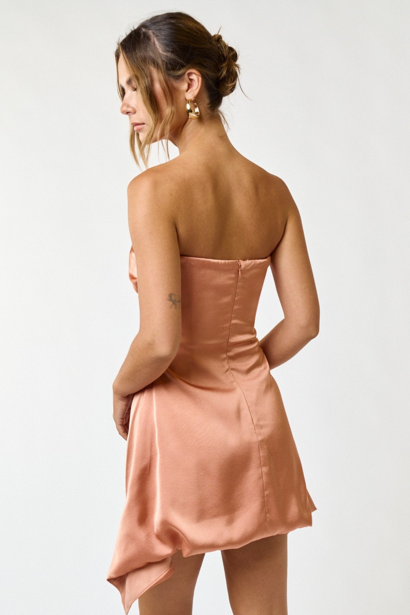 SATIN DETAILED TUBE MINI DRESS