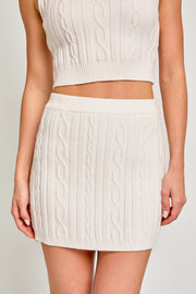 Le Lis: hgh waisted cable sweater mini skirt in white style #: IWS4334