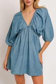 Denim Ballon Sleeve Dress in light denim style #: MD6556