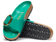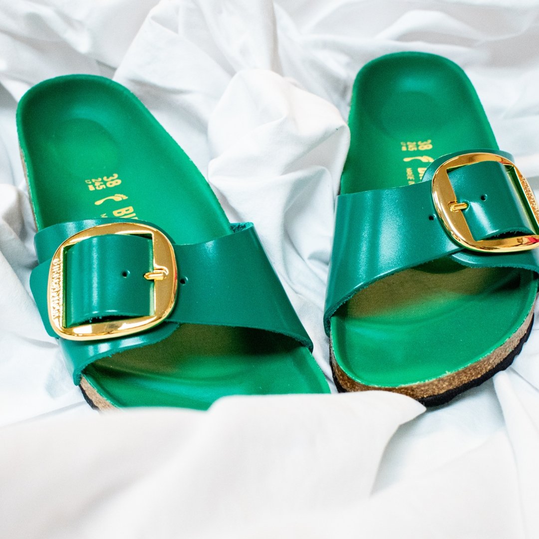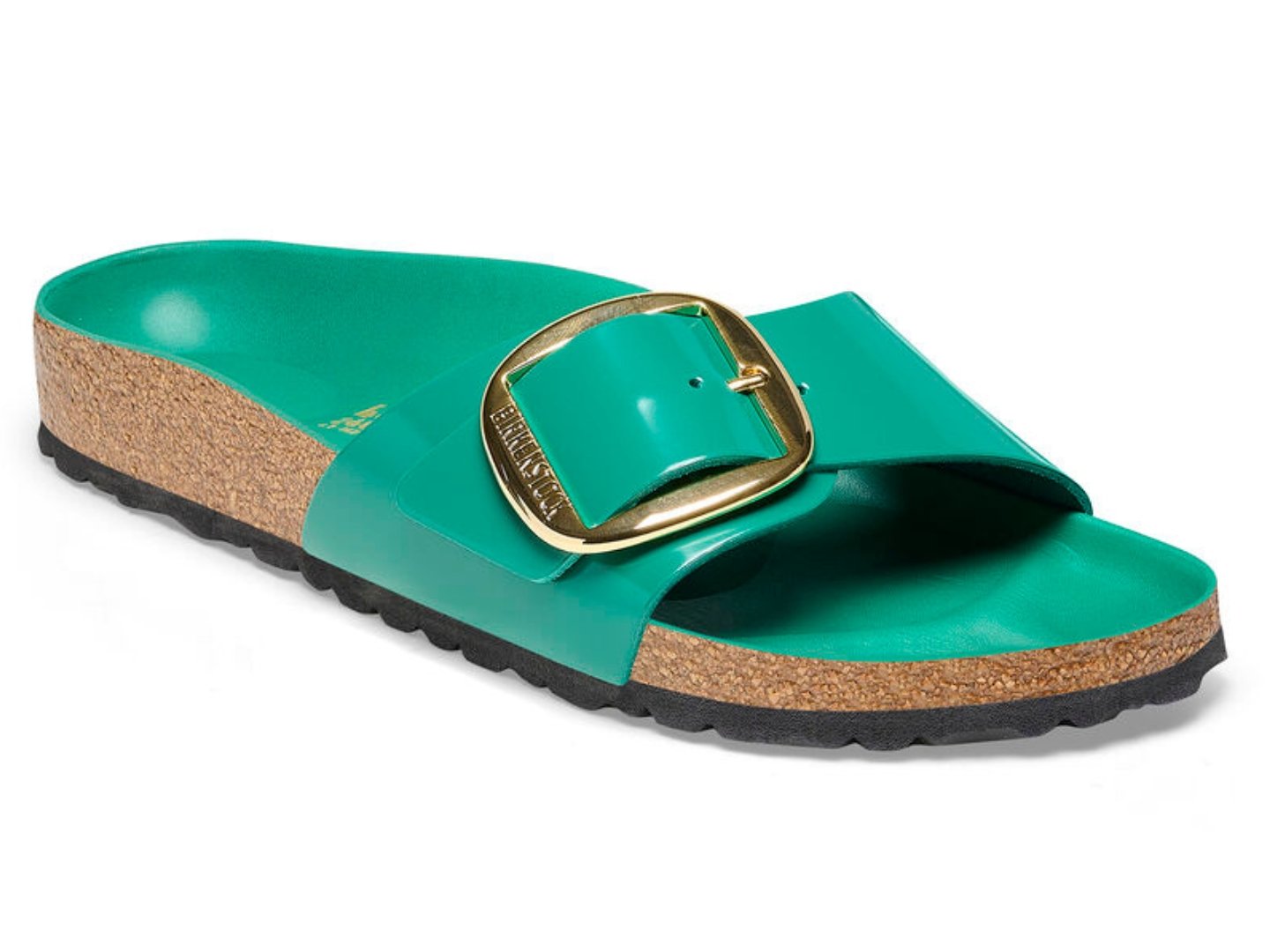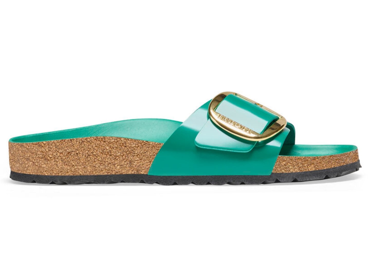 The original BIRKENSTOCK Sandal. A strap, a buckle, and a contoured cork footbed are masterfully combined to create the Madrid. An iconic slide with an amplified buckle accent. The semi-exquisite footbed is fully lined with soft piumato leather, making it exceptionally comfortable. The upper is made from high-quality natural leather with a high shine finish.