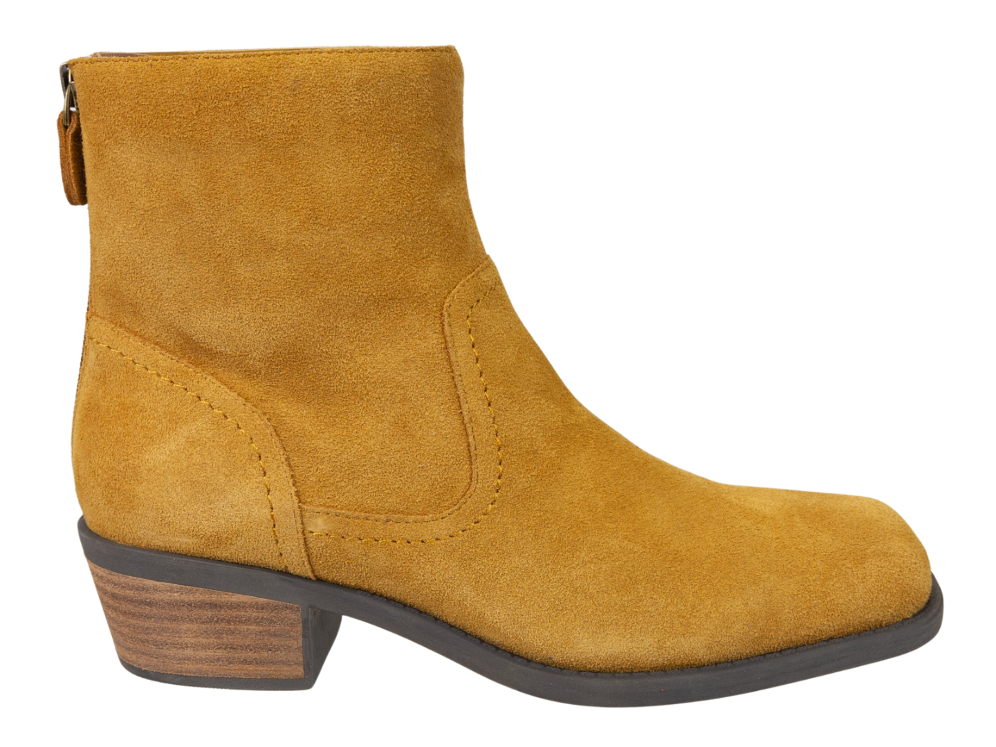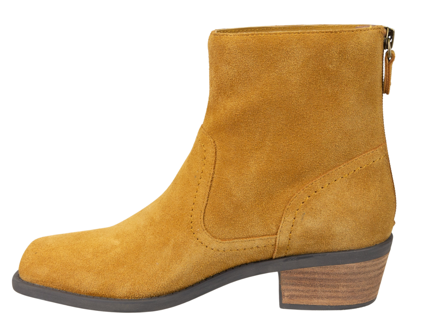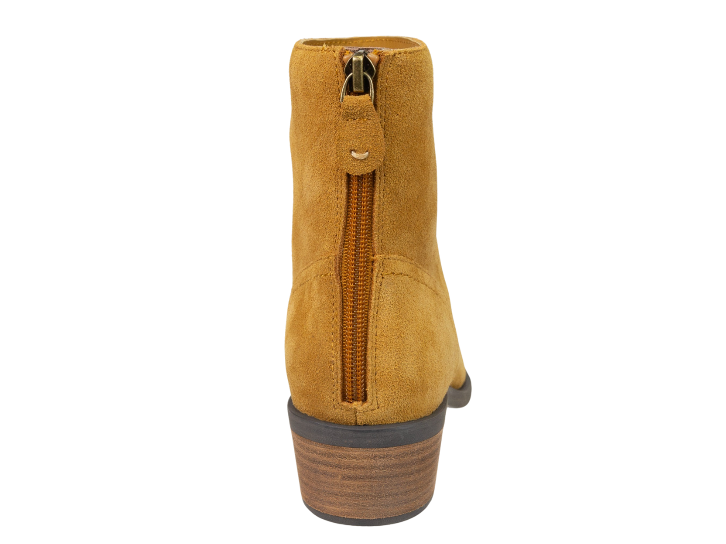 Looking for heritage western booties? These warm yellow suede boots have a subtle square toe and just enough western detail to give them a nostalgic, homestead feel. Featuring a square stacked heel and easy zipper closure, this style is also well suited for all of your all-day adventures.