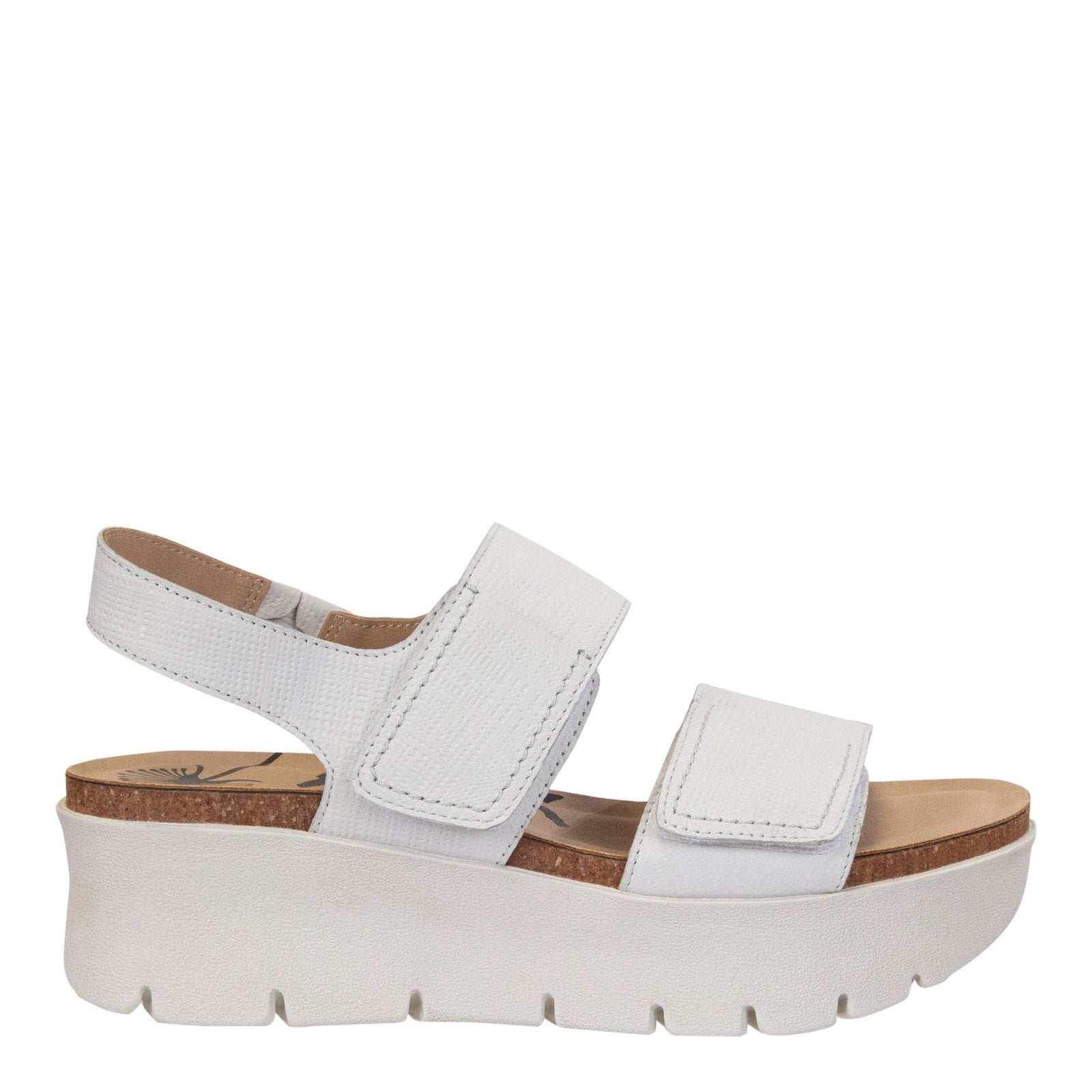 Introducing a style with a completely personalized fit. Montane in dove is designed with embossed leather, and features double velcro straps, so you can customize the perfect fit for you. Part of OTBT's Travel Lite® collection, this platform sandal also ups the cool factor with a lightweight sport bottom. These comfortable walking shoes are made for women who can't be weighed down.