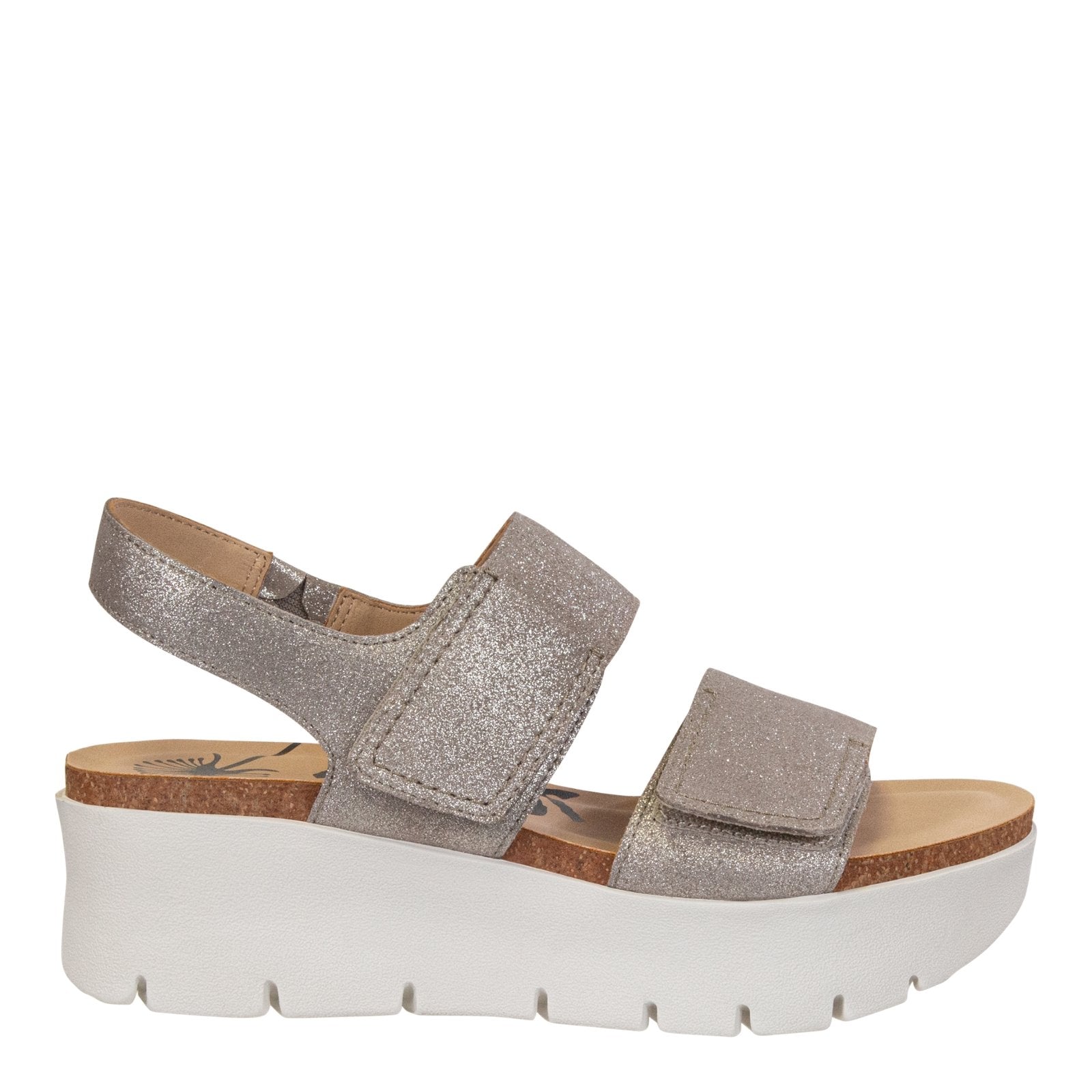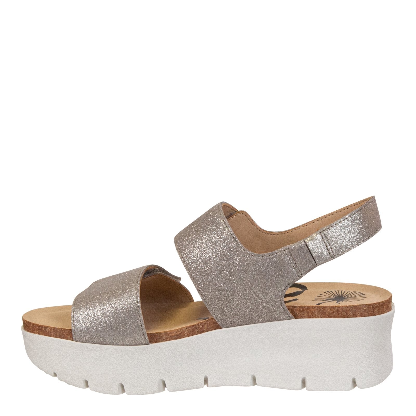 Introducing a style with a completely personalized fit. Montane in silver is designed with glittering metallic leather, and features double velcro straps. so you can customize the perfect fit for you. Part of OTBT's Travel Lite® collection, this platform sandal also ups the cool factor with a lightweight sport bottom. These comfortable walking shoes are made for women who can't be weighed down.