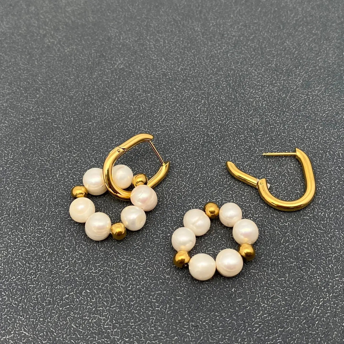 Type: earrings Material : Stainless steel ,Freshwater pearl,18K gold plated Size : 22.3mm*37.2mm Process: Vacuum electroplating and manual polishing,Non - tarnish Surface : High Polish ★Made of high quality stainless steel,Lead-free,Harmless to Human Body. ★Perfect jewelry gifts