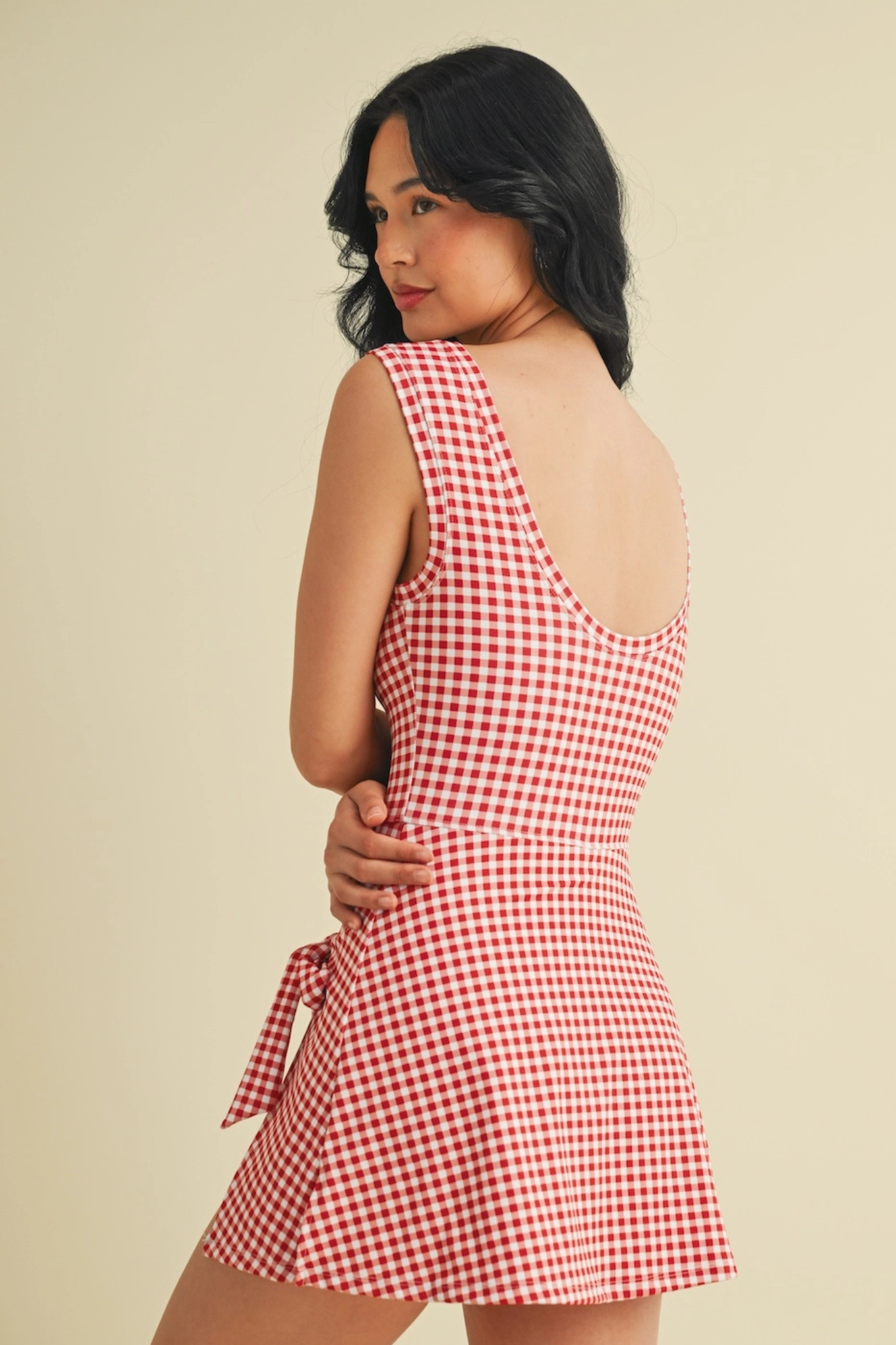 Sleeveless Wrap Dress in Red Gingham by Kimberly C