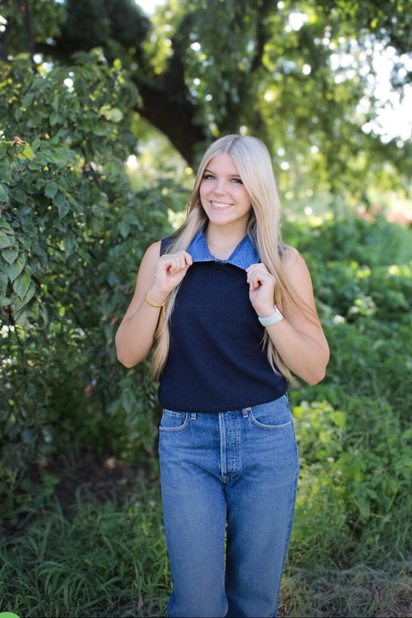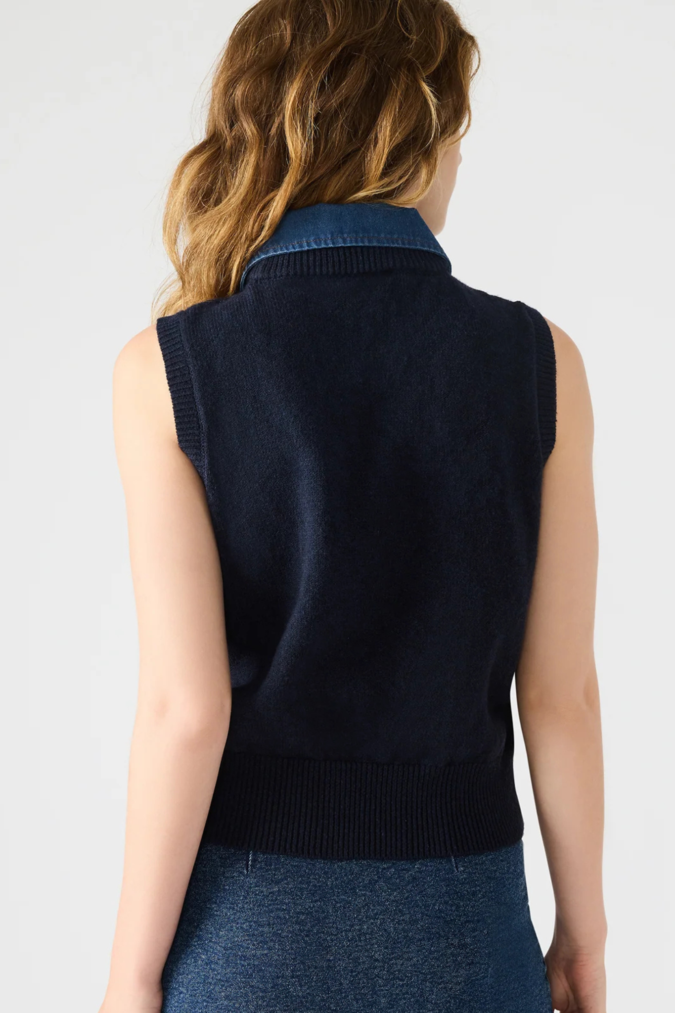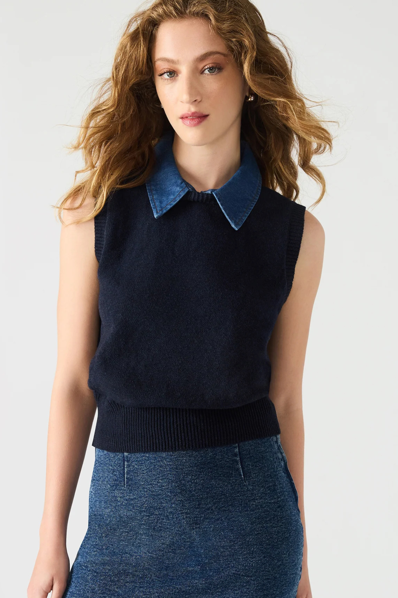 Elevate your layering game with the JEANE sweater vest top. Crafted for versatility, this sweater vest offers a refined knit texture and a multi-tone design that seamlessly complements both casual and polished outfits. It's tailored fit ensures comfort while adding a sophisticated dimension to your wardrobe essentials. Ideal for transitional weather, it pairs effortlessly with shirts or blouses for a modern, expert-curated look.