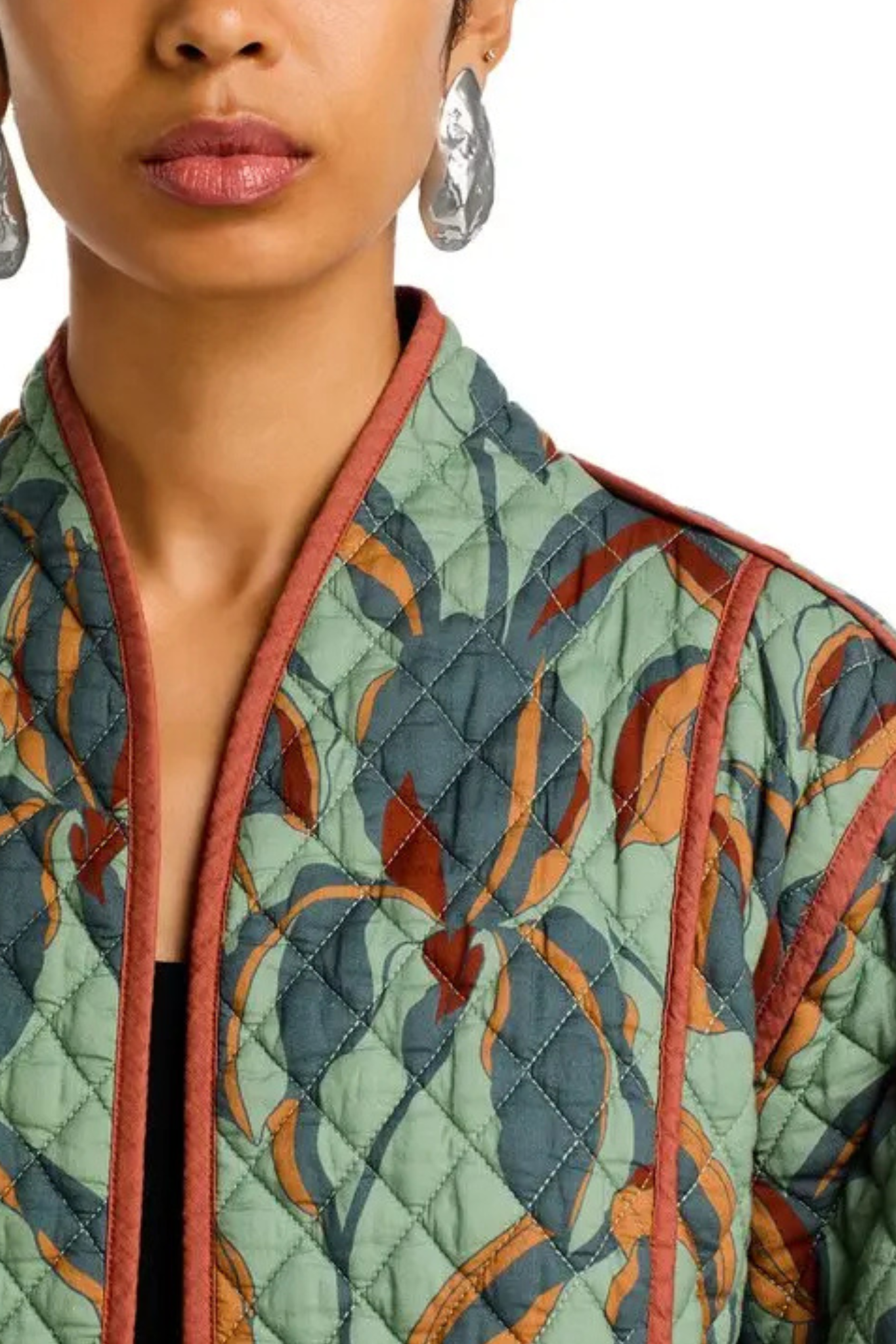 The Steve Madden Adalynn Jacket is a quilted jacket with long sleeves. The jacket is crafted from 100% cotton.