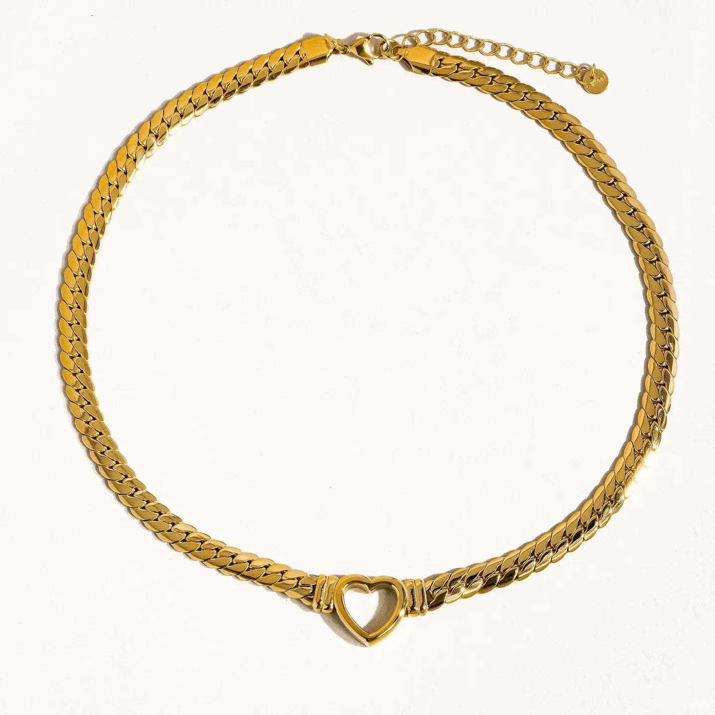 Tessa 14K Non-Tarnish Heart Snake Chain Necklace, Bracelet