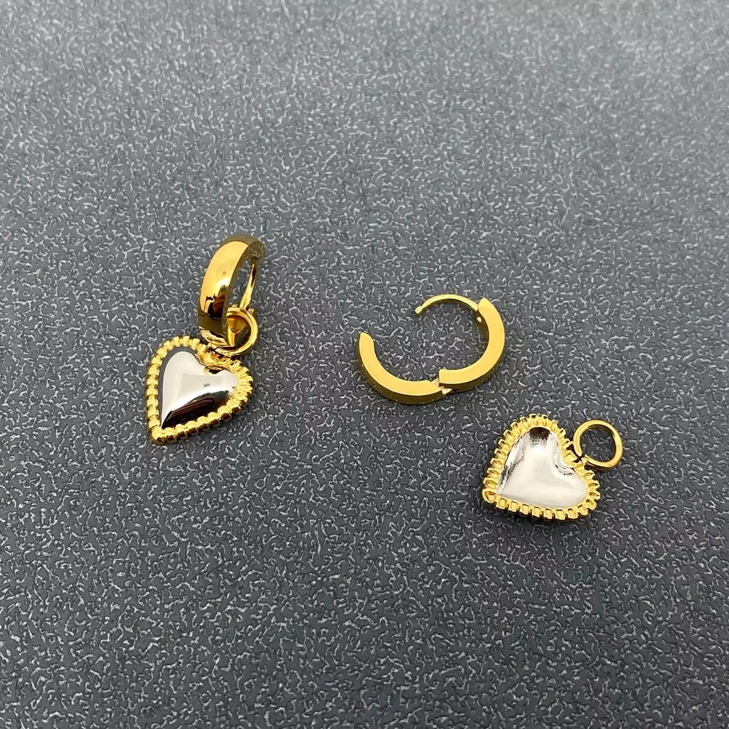 Two Tone Heart Huggie Earrings in Gold Mio Queen