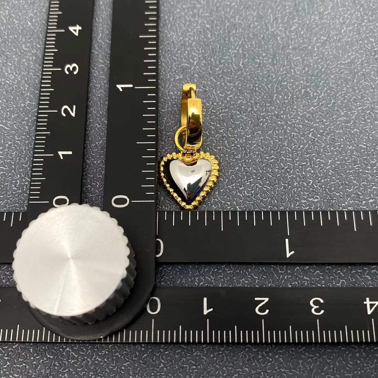 Two Tone Heart Huggie Earrings in Gold