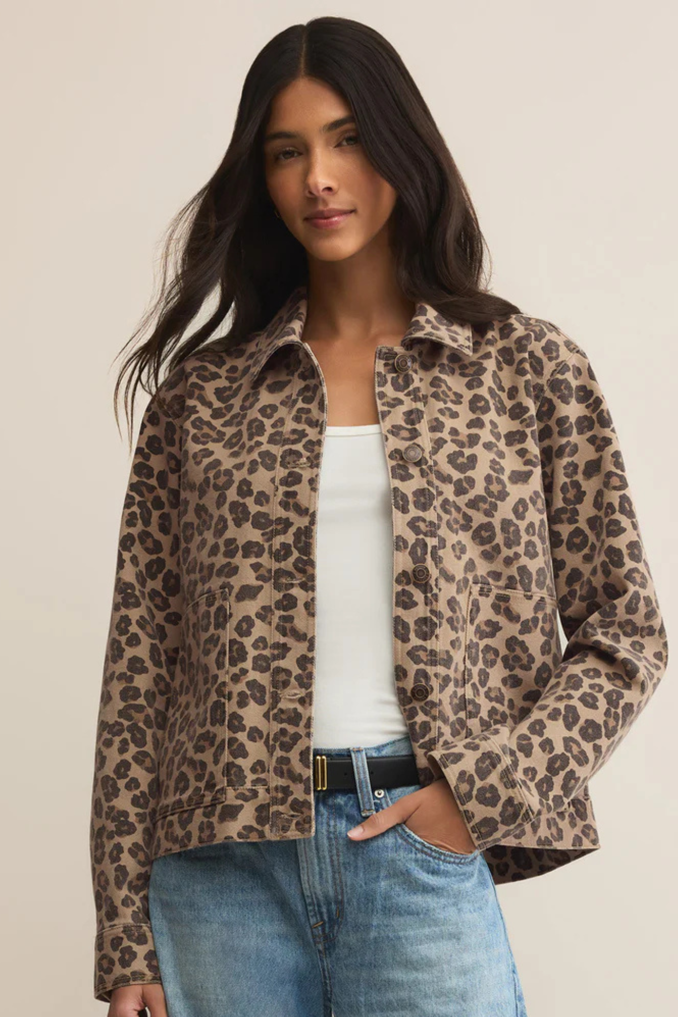 Bel Air Leopard Denim Jacket in Desert Tan by Z Supply