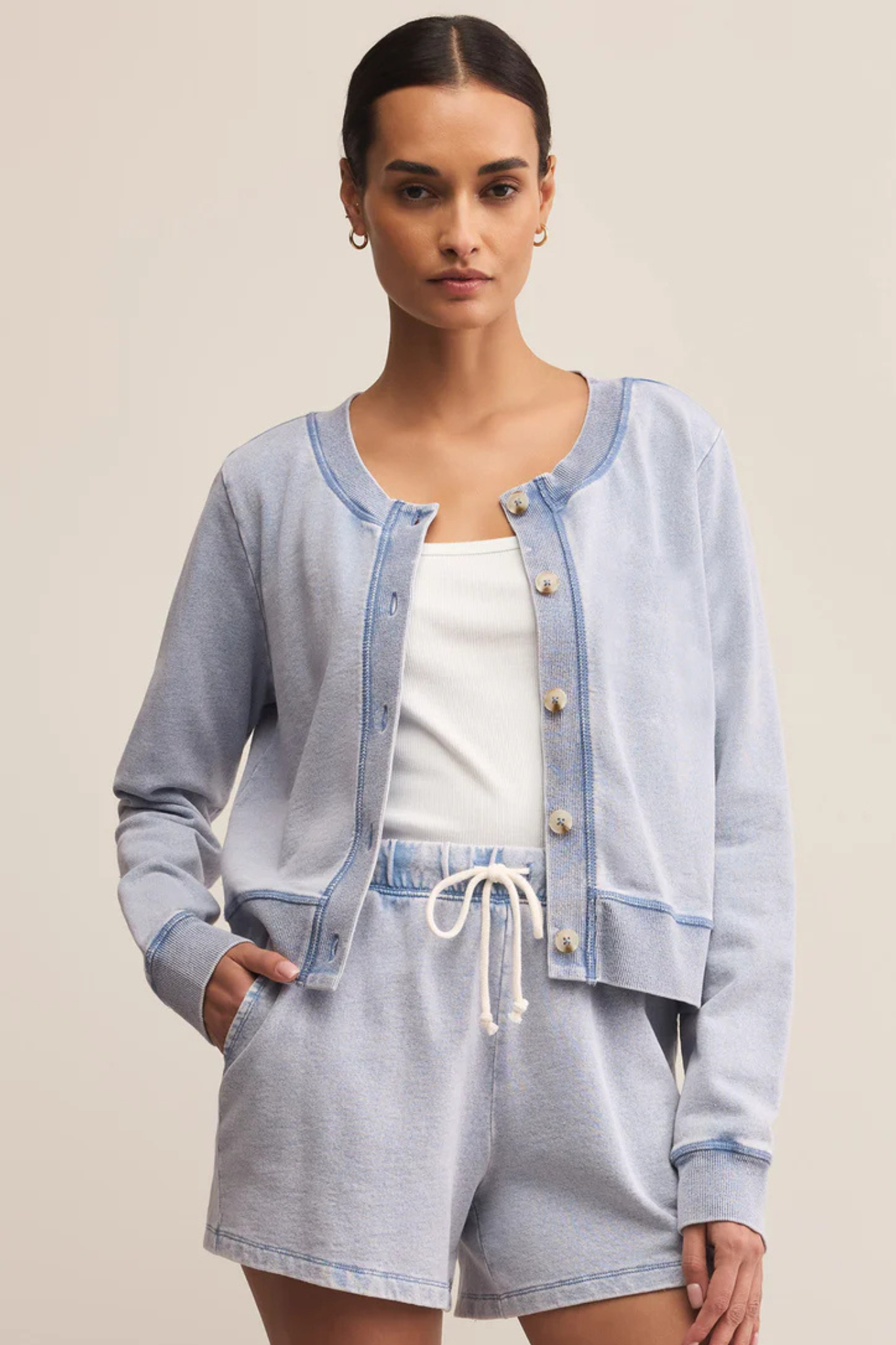 Z Supply: Daily Knit Denim Cardigan in Washed Indigo