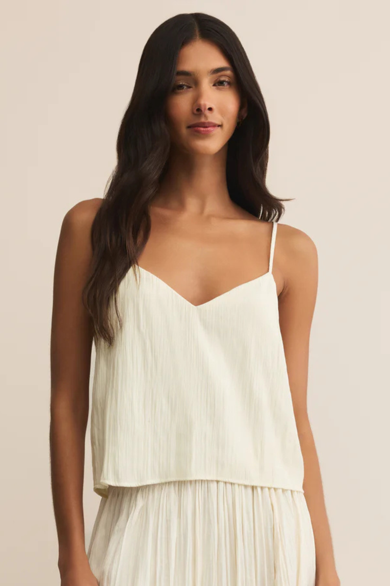 Fiore Crinkle Satin Tank in Sandstone by Z Supply