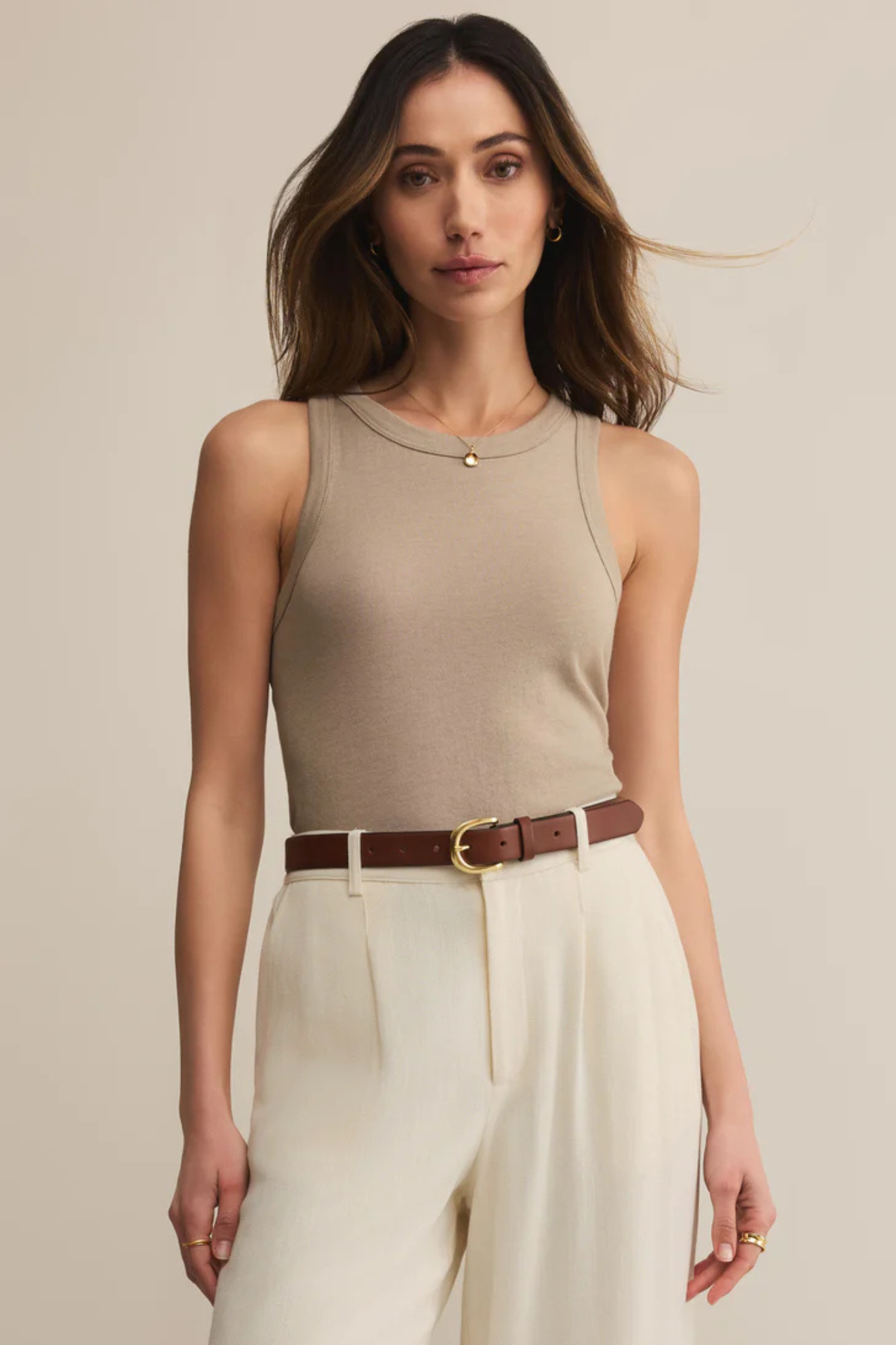 Laid-back and made for easy days, this relaxed tank is crafted from breathable loose knit jersey. With a classic crew neckline, bra-friendly wide straps, and a tuckable fit, it’s the kind of essential you’ll reach for on repeat.