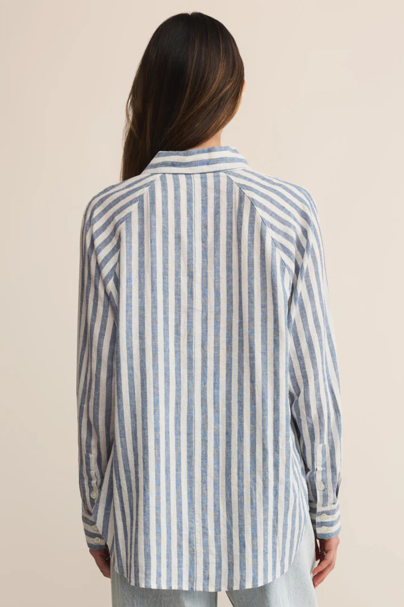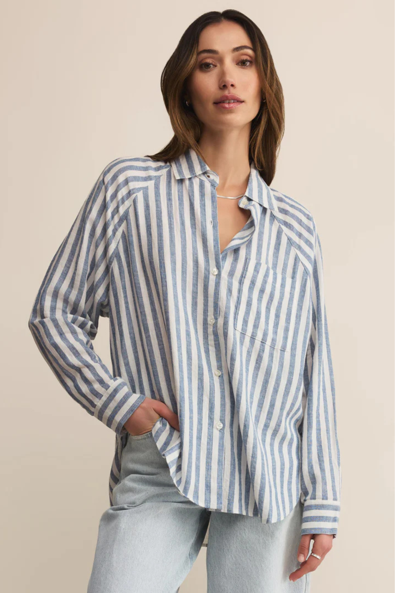 You'll love the easy, breezy comfort of this classic stripe button-up. Featuring that soft, drapey feel you look for, you can wear it alone or as a lightweight layer for an effortless look, no matter where your day takes you.