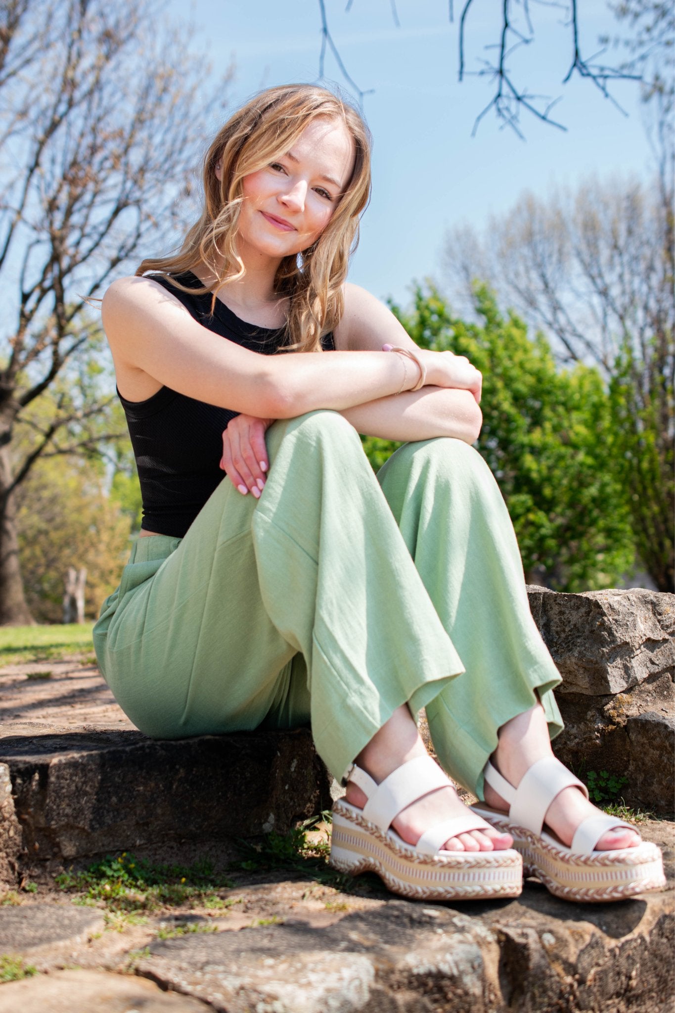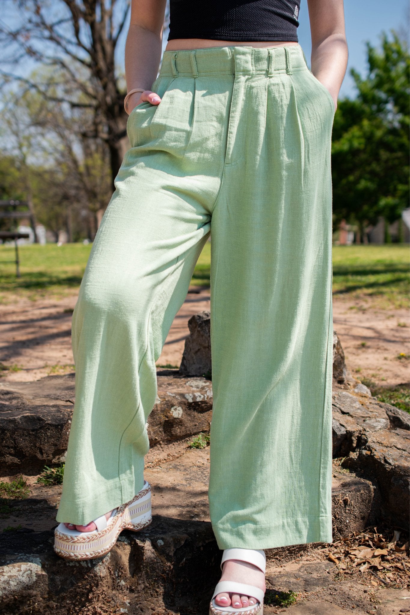 - High waist wide leg pant
